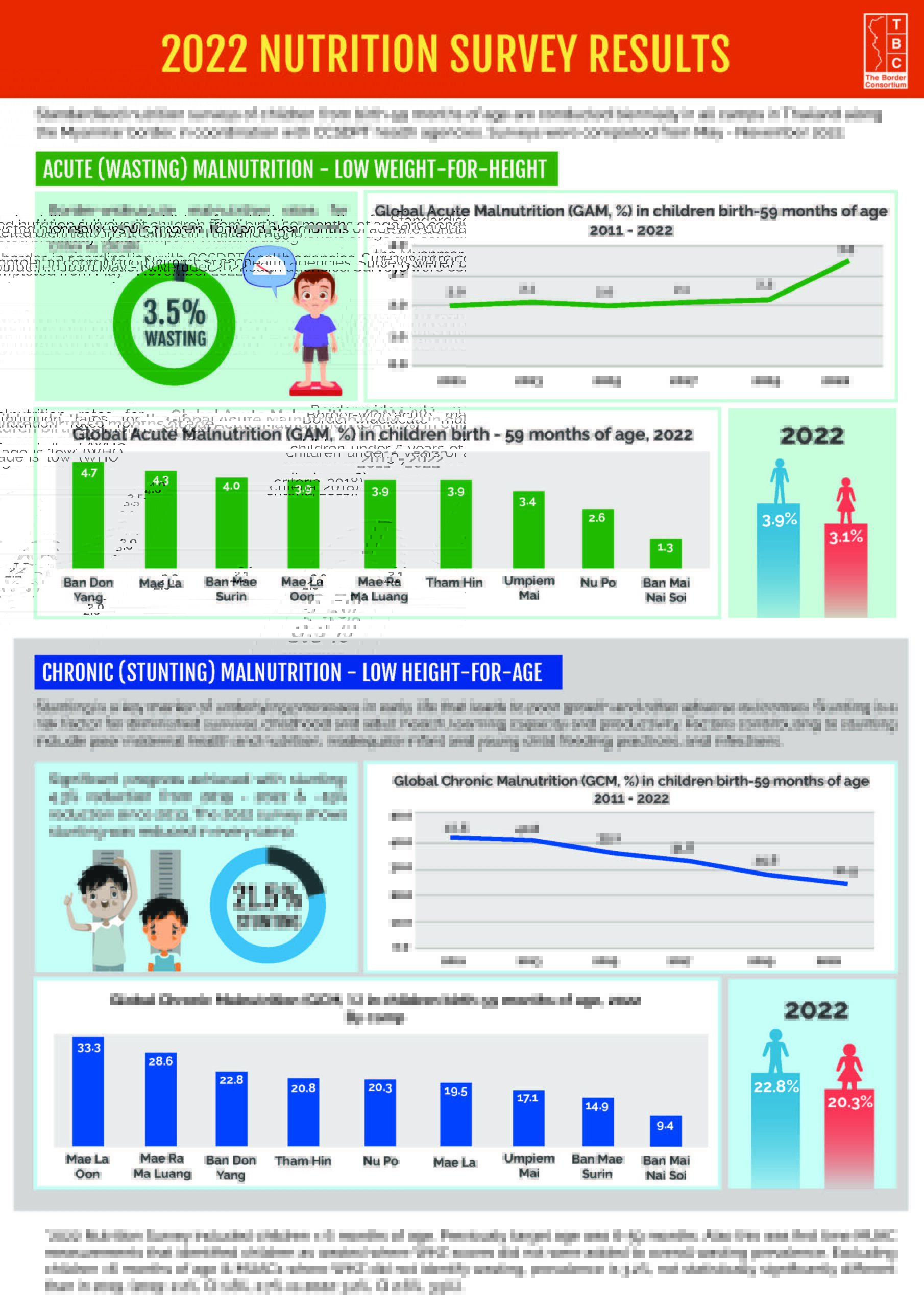 TBC’s 2022 Annual Nutrition Survey Infographic is now available. Covering details of nutrition standards in all nine refugee camps along the Thai-Myanmar border, the infographic is available in English, Burmese, & Karen.
