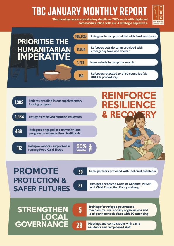 This month’s update shows how recent Executive Orders impact our food support for displaced communities, with snapshots of our work and camp population figures.